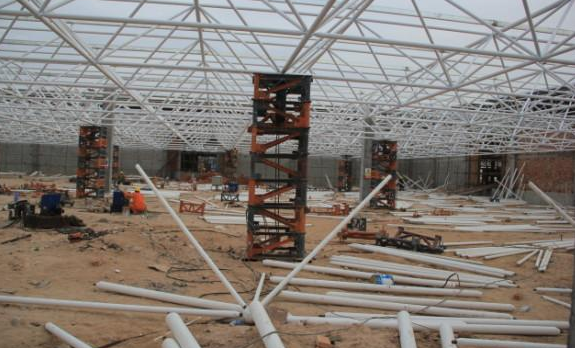 5)总体晋职法:此步履多使用在周边支护以及有多点支护的网架结构,可采取平板升降机、液压千斤顶等小型机具作业榆林施工;